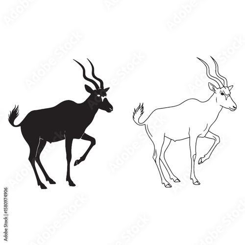 Obraz premium Illustrating Its Distinctive Coat - Addax Body Outline Package - Defined Silhouette and Precise Lineart - Addax silhouette - Addax lineart - Addax vector - silhouette & lineart of Addax