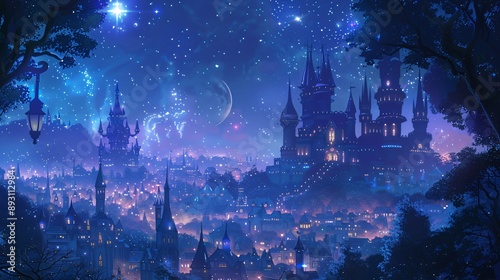 Obraz premium illustration art castle with full moon in night style art anime