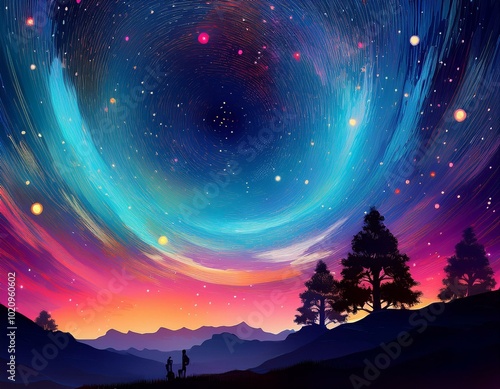 © Paul, Fototapeta premium Illustration artistique d'un arrière-plan galactique avec la Voie lactée