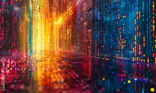 © Handz, Naklejka premium Illustration background Digital Matrix Abstract Perspectives on Technology and Data