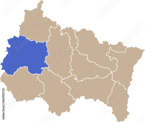 Fototapeta premium Illustration carte de la région Grand Est avec département Marne mis en lumière
