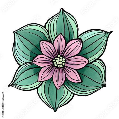 Fototapeta premium Illustration cartoon drawing, flower bud top view