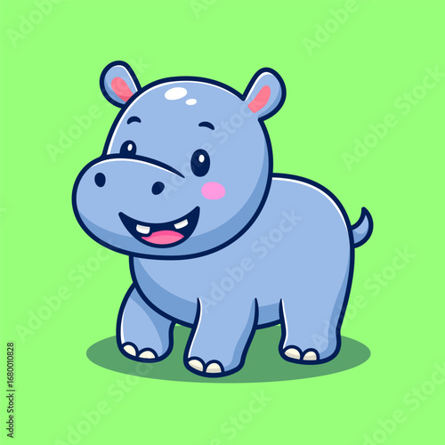 Fototapeta premium illustration cute cartoon hippo with a smile face