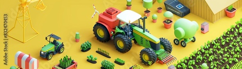 © Chano_1_na, Obraz premium illustration 3D Model AIenabled agriculture with automated farming equipment and crop monitoring