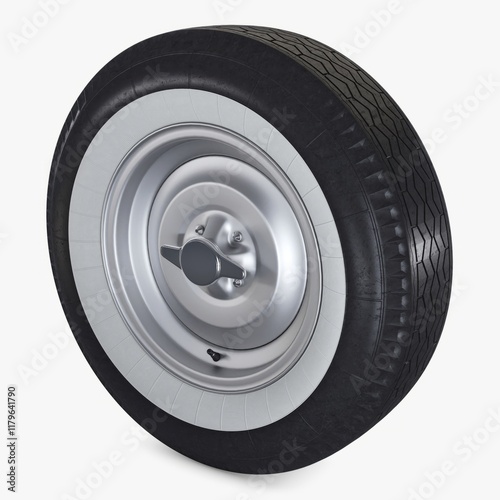 Fototapeta premium Illustration 3D of a vintage 1950s retro car wheel, designed for automotive...