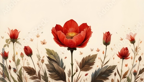 Obraz premium Illustration de Fleur Pavot Rouge sur Fond Crème