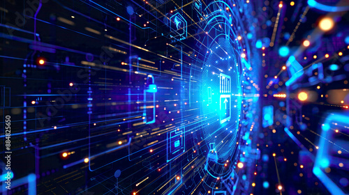 Fototapeta premium Illustration depicting a firewall and internet security concept symbolizing...