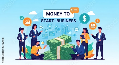 © rahmat, Fototapeta premium Illustration depicting a group of entrepreneurs securing funding to start a business venture