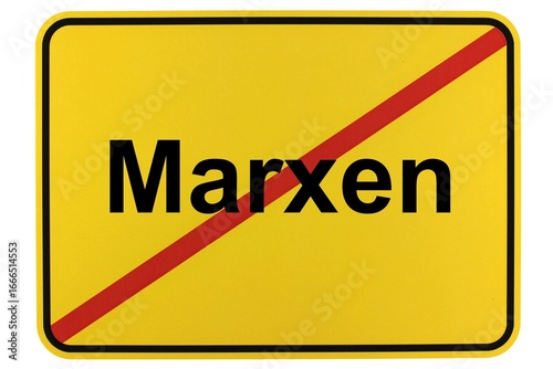 © Pixel62, Naklejka premium Illustration eines Ortsschildes der Gemeinde Marxen in Niedersachsen