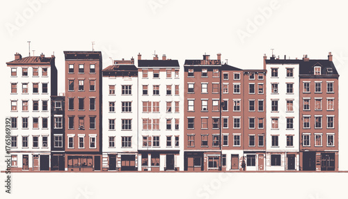 © Pangala, Fototapeta premium Illustration featuring a series of townhouses in various styles, depicted in earthy tones