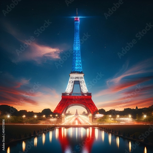 © Milano, Fototapeta premium Illustration for Bastille Day in France with Eiffel Tower in colors of French flag.