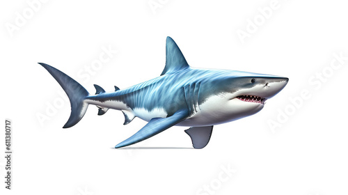 © miro, Fototapeta premium Illustration from shark in cartoon style on white background with copy space created with with Generative AI