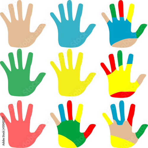 © fotoscool, Obraz premium illustration hands multicolored set isolated on white