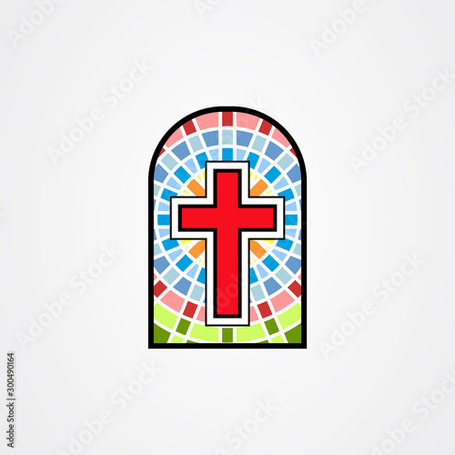 © 1arts, Obraz premium Illustration in stained glass style with a christian cross