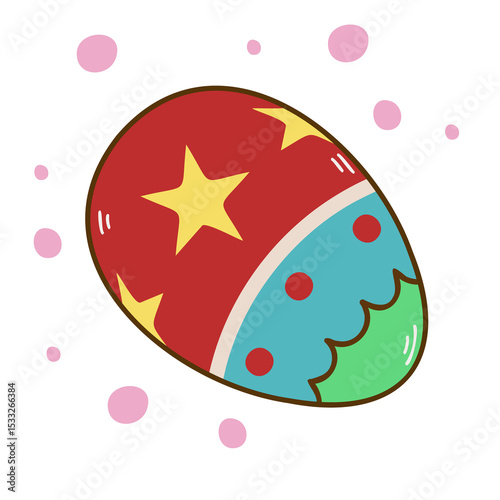 Fototapeta premium illustration is depicting Easter egg with tri-color patterns and pink circles, transparent backdrop