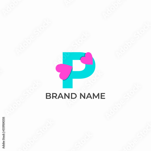 © garis lurus, Fototapeta premium ILLUSTRATION LETTER P WITH LOVE, HEART SIMPLE MODERN LOGO ICON DESIGN VECTOR