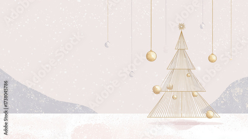 Fototapeta premium Illustration minimaliste moderne de Noël avec sapin stylisé et ornements dorés