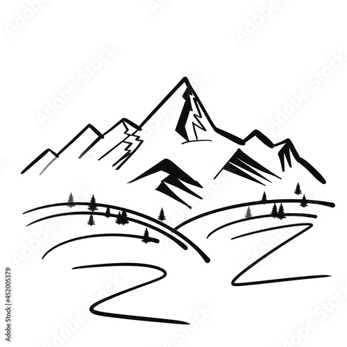 Fototapeta premium Illustration mountain nature graphic outdoor design, landscape hill and...