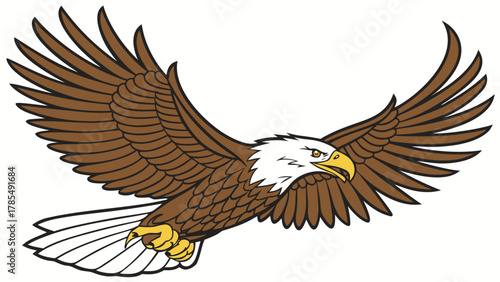 Fototapeta premium Illustration of a bald eagle in flight with its wings spread wide and talons...