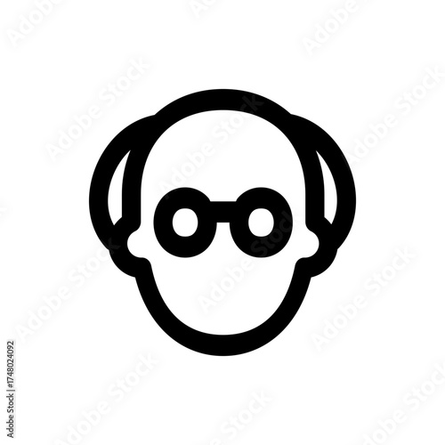 © Farhan, Fototapeta premium Illustration of a bald head with round glasses and large ears in a minimalist black and white style
