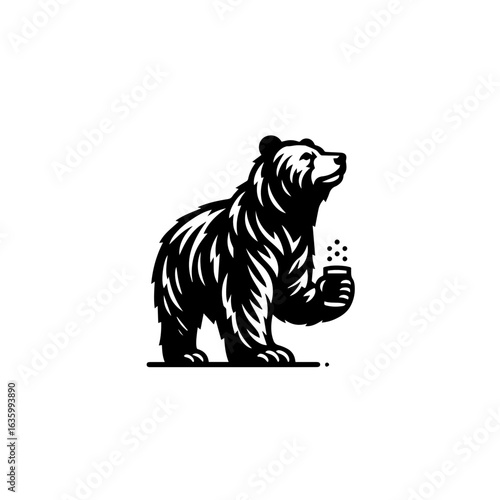 © Tonmoy, Naklejka premium Illustration of a bear holding a mug, isolated on white background