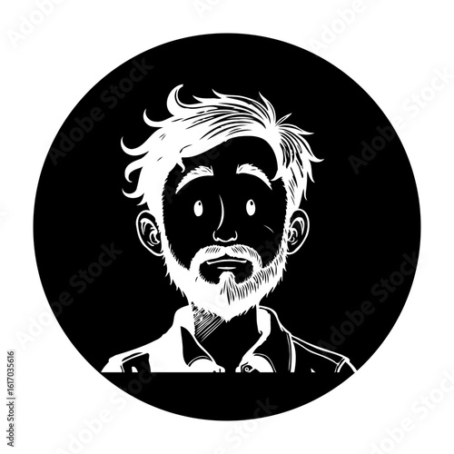 © LgsDesign, Fototapeta premium Illustration of a bearded man with a serious expression displayed within a circular frame black background