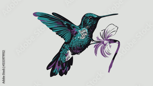 Obraz premium Illustration Of A Beautiful Hummingbird In Flight With Detailed Features