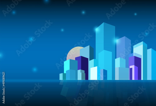 © Somchai, Fototapeta premium illustration of a big city on a blue background
