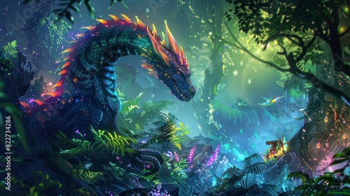 Obraz premium illustration of a big dragon in a forest