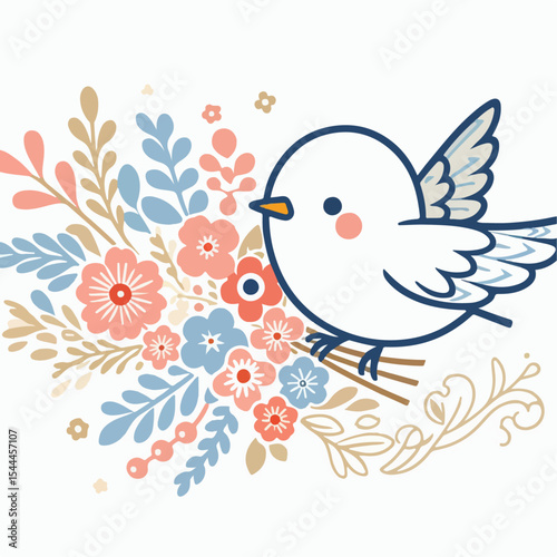 © wahyu, Fototapeta premium illustration of a bird carrying flowers