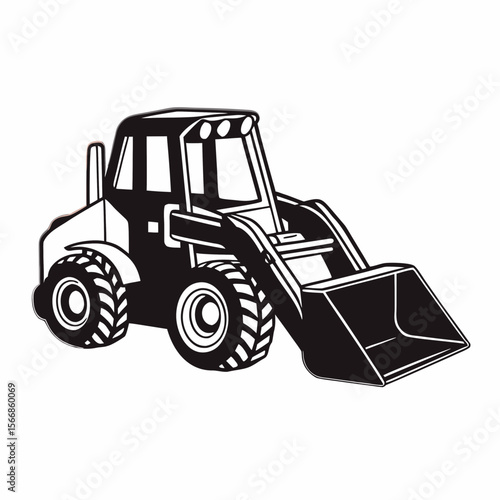 © Shahbaz, Naklejka premium Illustration of a black and white skid steer loader with a large bucket in a side view design created with generated ai