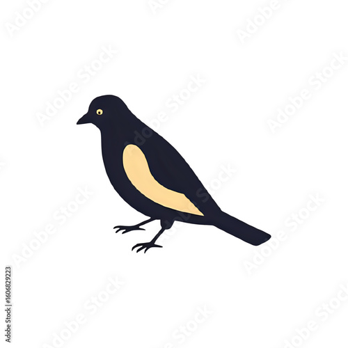 © Hamza, Obraz premium Illustration of a black bird with a yellow patch standing on a white background