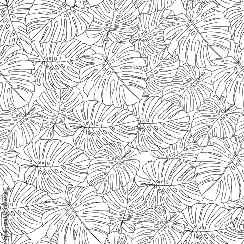 Obraz premium Illustration of a black leaves monstera isolated on a white background. Seamless pattern