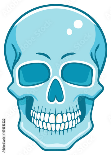 Fototapeta premium Illustration of a blue cartoon skull with a smiling grin
