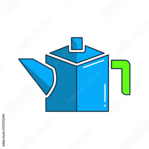 © Ainul, Obraz premium Illustration of a blue teapot with a green handle on a white background.