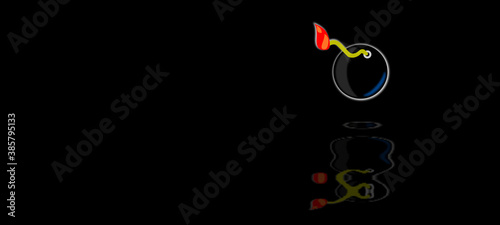 © Tenebroso, Obraz premium Illustration of a bomb. Classic, old. Digital drawing of the explosive with effects of reflections in the water. Artifact isolated on elegant dark background.