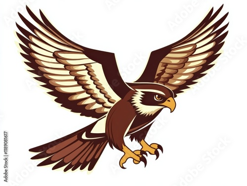 Obraz premium illustration of a brown and tan hawk in flight on a white background