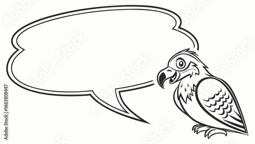 Naklejka premium Illustration of a cartoon bird with a speech bubble outline on a white...