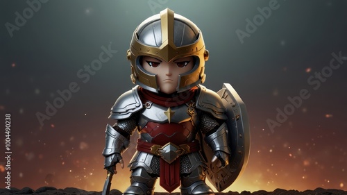 © Lycee, Fototapeta premium illustration of a chibi character with armor and shield