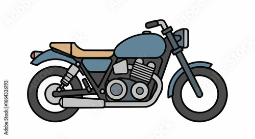 © Sahroni, Fototapeta premium Illustration of a classic blue motorcycle with a tan seat and black wheels.