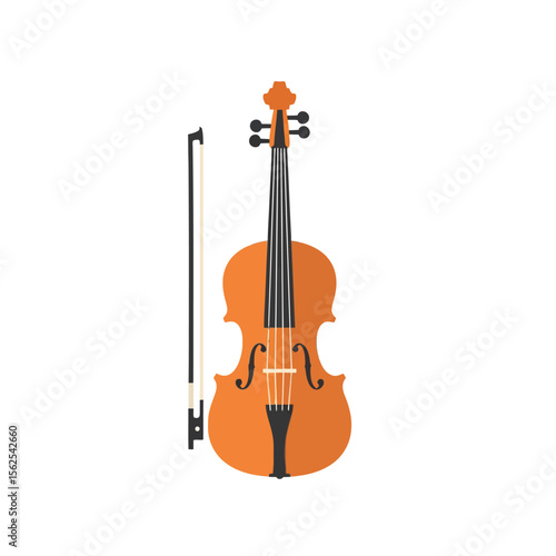 © SITI, Fototapeta premium Illustration of a classical violin with bow on a white background centered vertically