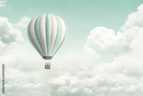 Naklejka premium Illustration of a colorful hot air balloon soaring through a cloudy sky,...