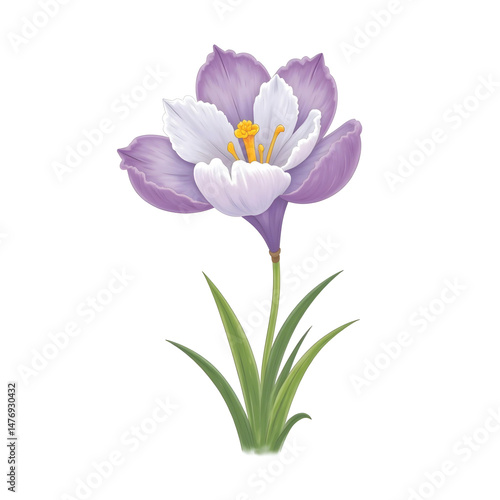 © Booknation Studios, Fototapeta premium Illustration of a Crocus Flower with Purple and White Petals