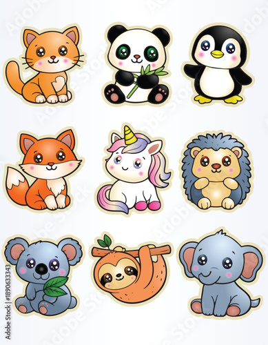 © oni, Fototapeta premium illustration of a cute animal sticker set on isolated white background