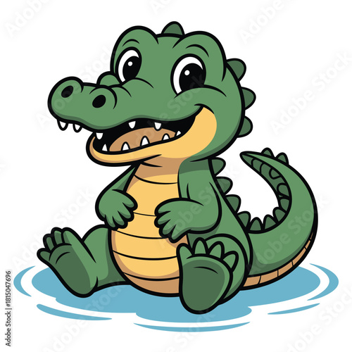 © Ridwan, Naklejka premium Illustration of a cute baby alligator sitting and smiling, isolated on, perfect for childrens books and educational materials