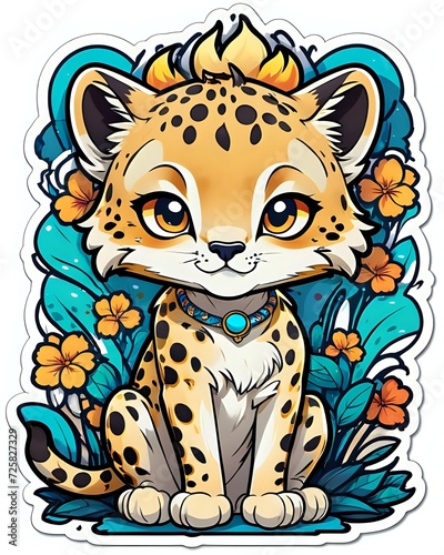 Fototapeta premium Illustration of a cute cartoon Cheetah sticker with vibrant colors and a...
