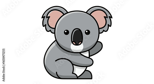 Naklejka premium Illustration of a cute cartoon koala with gray fur and pink ears waving its...