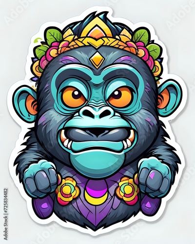© Pista Hunt, Fototapeta premium Illustration of a cute Gorilla sticker with vibrant colors and a playful expression