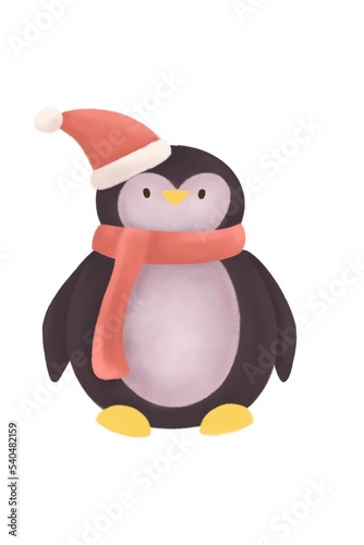 Obraz premium Illustration of a cute penguin in a hat. Image on a New Year and Christmas card, sticker, print.