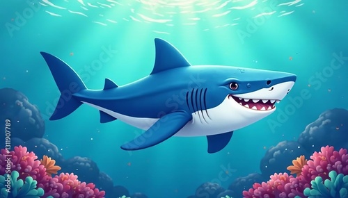 Obraz premium Illustration of a cute, smiling whale shark swimming in the ocean, whale...